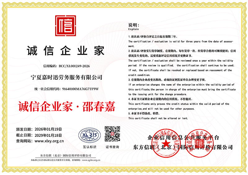 宁夏嘉时迅劳务服务有限公司成立于 2019 年 11 月 7 日,是一家深耕通信网络、劳务派遣、安防监控领域,集专业服务、工程施工、综合保障于一体的综合性服务企业。【宁夏嘉时迅劳务服务有限公司】