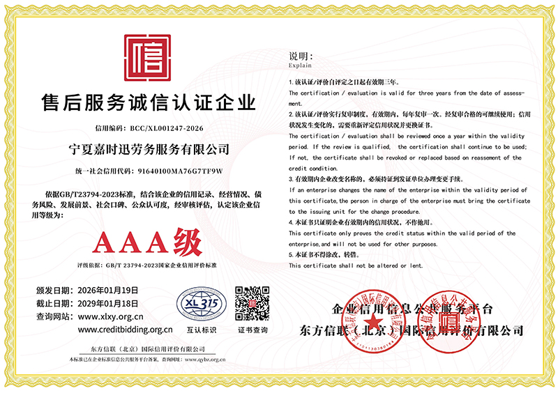 宁夏嘉时迅劳务服务有限公司成立于 2019 年 11 月 7 日,是一家深耕通信网络、劳务派遣、安防监控领域,集专业服务、工程施工、综合保障于一体的综合性服务企业。【宁夏嘉时迅劳务服务有限公司】